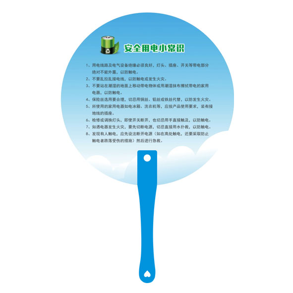 安全扇堅固耐用,圖文并茂,知識點豐富,旨在普及安全生產(chǎn)知識,提高人民群眾安全生產(chǎn)意識。本產(chǎn)品可用于咨詢活動時派發(fā),在潛移默化起到提示安全作用。