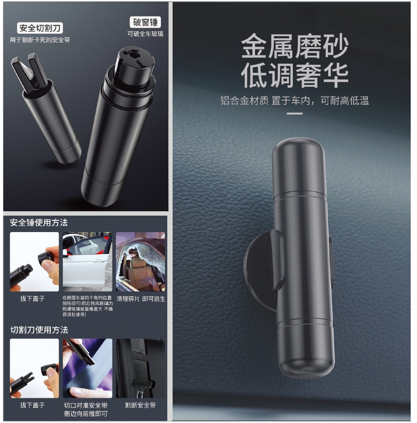 一秒破窗,迷你小巧;危急時(shí)刻可割斷卡死的安全帶;U型刀口設(shè)計(jì),安全不傷手。