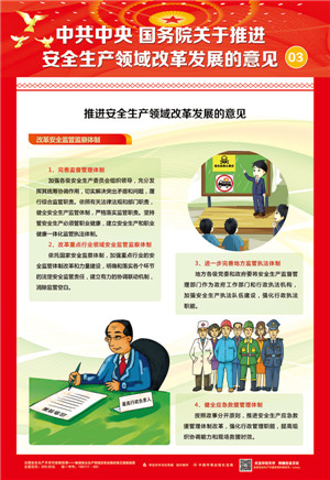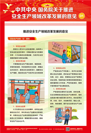 《中共中央國務(wù)院關(guān)于推進(jìn)安全生產(chǎn)領(lǐng)域改革發(fā)展的意見》是新中國成立以來第一個以黨中央、國務(wù)院名義出臺的安全生產(chǎn)工作的綱領(lǐng)性文件。本套掛圖提取意見中一系列改革舉措和任務(wù)要求,是當(dāng)前和今后一個時期我國安全生產(chǎn)領(lǐng)域改革發(fā)展的方向和路徑。