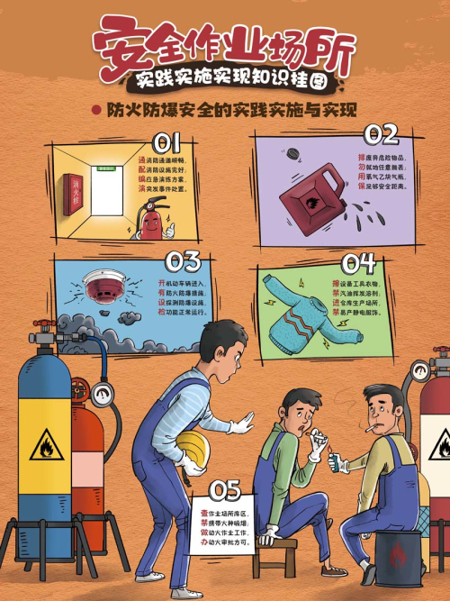 本掛圖通過對作業(yè)場所環(huán)境安全、生產(chǎn)設(shè)備及工藝安全、電氣設(shè)施安全、防火防爆安全、作業(yè)人員安全、作業(yè)行為安全的實現(xiàn)進行了歸納與提煉,為企業(yè)實現(xiàn)生產(chǎn)作業(yè)現(xiàn)場整體安全提供方法指導。