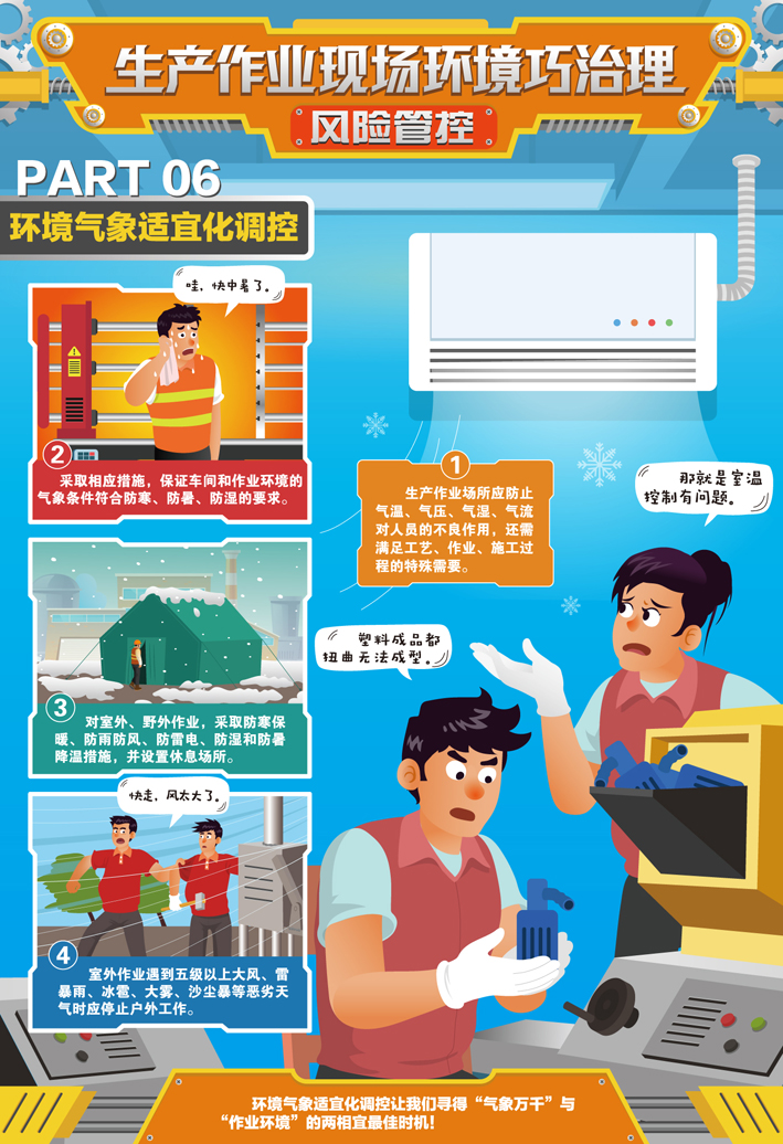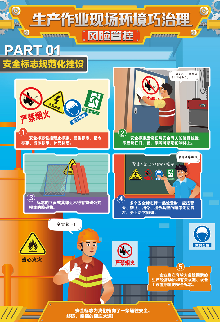 本套掛圖系統(tǒng)地通過對(duì)作業(yè)環(huán)境安全標(biāo)志設(shè)置、作業(yè)區(qū)域功能化劃分、設(shè)備管線布設(shè)、物料產(chǎn)品儲(chǔ)存、環(huán)境照明配置、環(huán)境氣象調(diào)控的要求進(jìn)行描述,為創(chuàng)造和改善現(xiàn)場(chǎng)作業(yè)環(huán)境條件提供了技術(shù)提導(dǎo)和幫助。