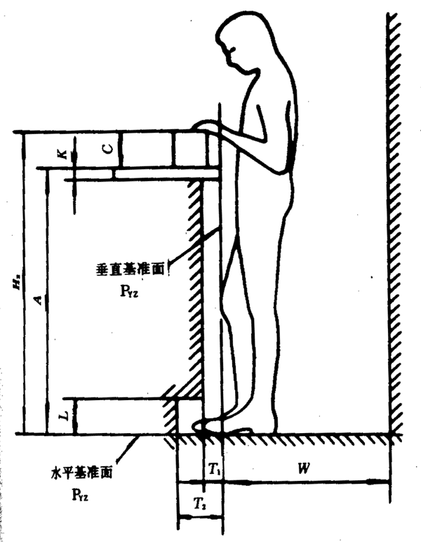 立姿時手操作平面和水平基準面之間的距離(見圖2和圖3)。