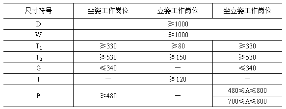 與作業(yè)無關(guān)的工作崗位尺寸按表1所規(guī)定的數(shù)值確定;與作業(yè)有關(guān)的尺寸匯總?cè)缦拢?br />