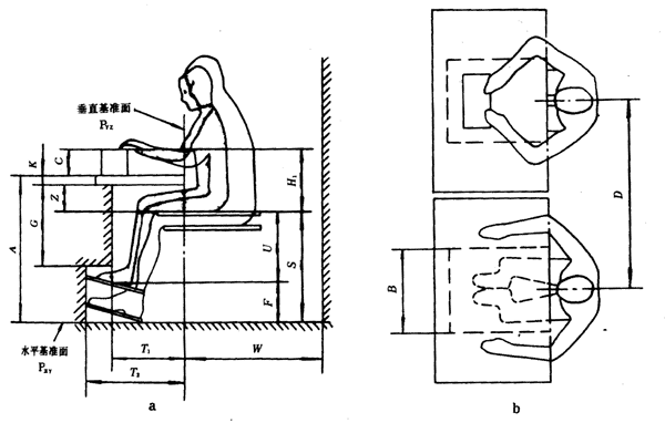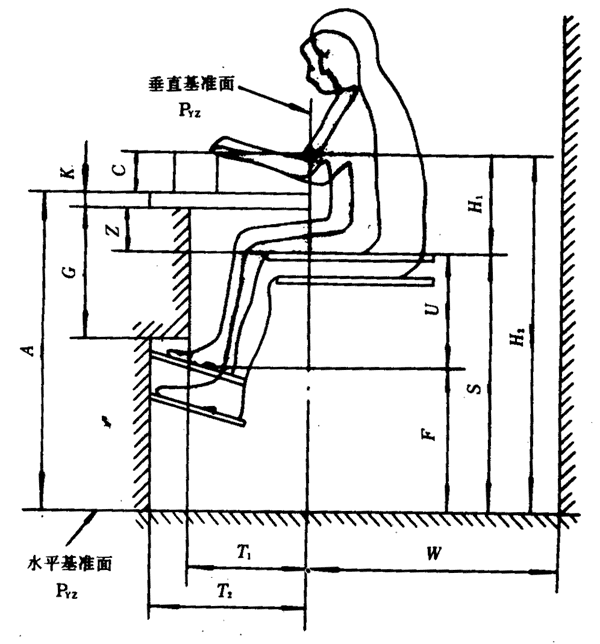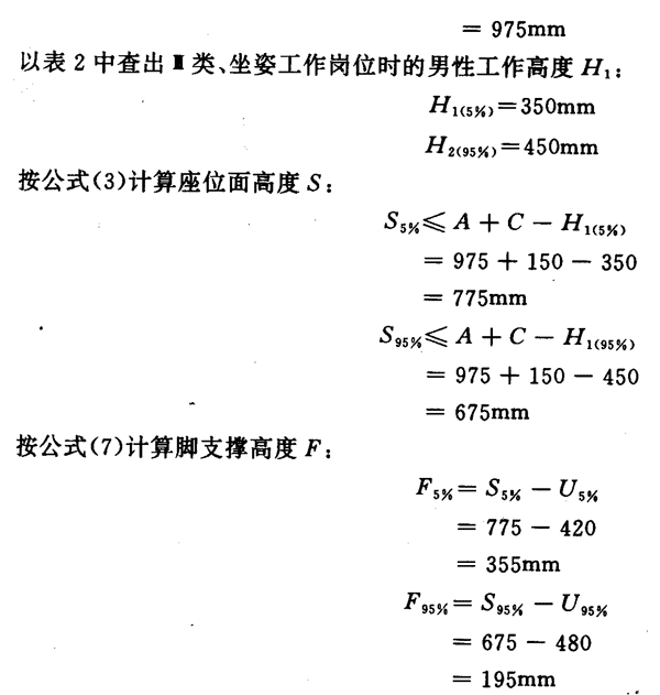 5.3.2.3 在設(shè)計女性和男性共同使用的坐姿工作崗位時,應(yīng)選取男性的相對高度H1計算工作面高度A;同時座位面高度S和腳支撐高度F必須有較大的調(diào)節(jié)范圍,以適應(yīng)女性作業(yè)人員。