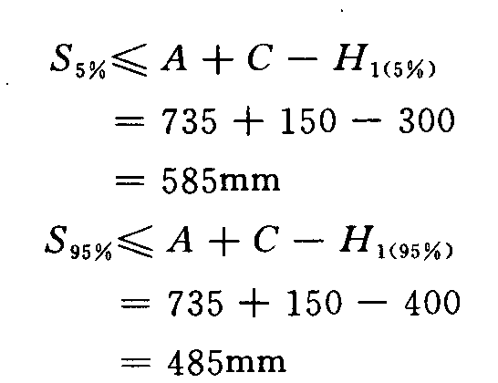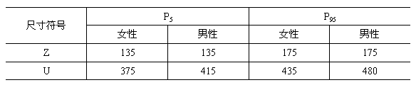 5.3.2.6 根據(jù)5.2.3.2條檢驗第5和第95百分位數(shù)的大腿空間高度Z5%和Z95%是否大于表3中的最小限值。