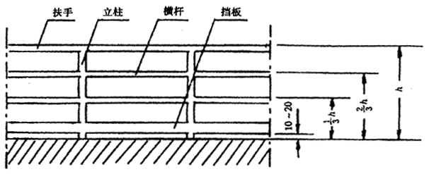 3.1 固定式工業(yè)防護(hù)欄桿:沿平臺、通道及作業(yè)場所敞開邊緣固定安裝的防護(hù)設(shè)施(見圖)。