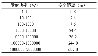 ?。▍⒖技?BR> A1 爆區(qū)與中、長波電臺(AN)的安全距離,應(yīng)符合表A1的規(guī)定。