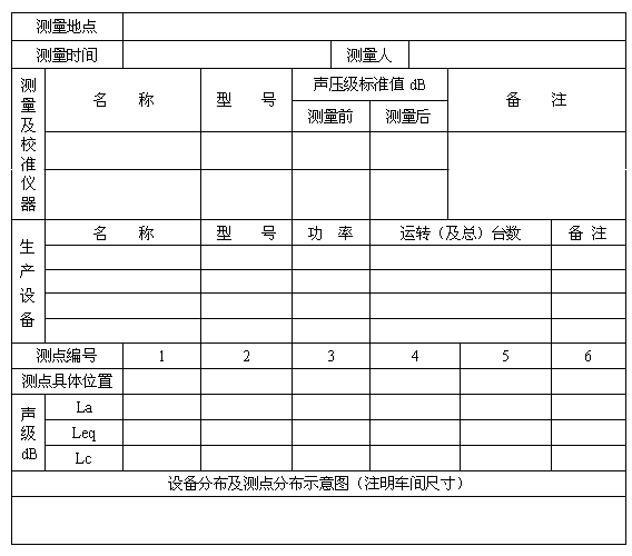 第4.4.1條 工業(yè)企業(yè)非生產(chǎn)環(huán)境的噪聲測(cè)量,應(yīng)按附表1.2所列內(nèi)容填寫(xiě)。