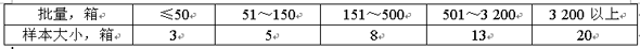 在交貨地點(diǎn)隨機(jī)抽取箱樣本。驗(yàn)收包裝質(zhì)量時(shí),檢查樣箱中的全部小包裝,合格判定率