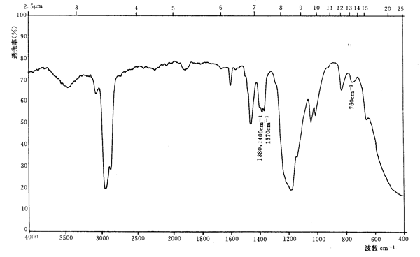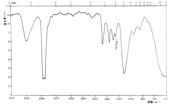 -1(8.0µm)處顯示中等強(qiáng)度吸收。以上吸收峰的特征同脂肪醇聚氧乙烯醚有明顯的區(qū)別。
