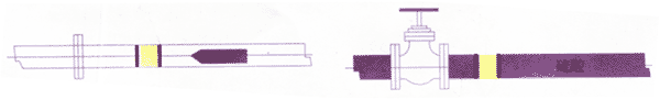 b)表示方法:在管道上涂150mm寬黃色,在黃色兩側(cè)各涂25mm寬黑色的色環(huán)或色帶(見附錄A),安全色范圍應(yīng)符合GB2893的規(guī)定。