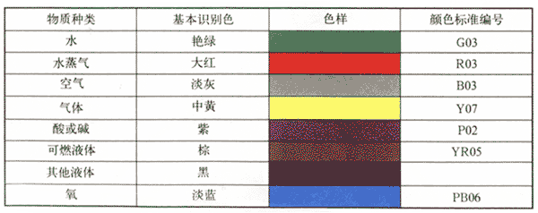 用以識(shí)別工業(yè)管道內(nèi)物質(zhì)種類的顏色。