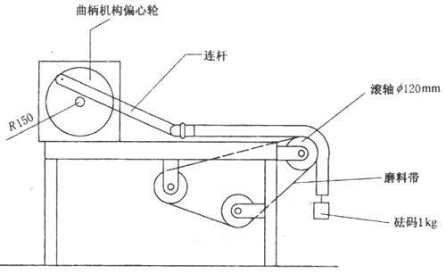 將軟管用一個旋轉的光滑滾輪來支撐,在滾輪的外緣上附著一條砂布帶,以0.1m/min的速度移動。砂布的磨料為金剛砂,按照ISO/DIS6344的規(guī)定顆粒大小為P100。