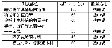 電炒鍋各部位溫升、用熱電偶測定,所選用的熱電偶及其放置位置應對被測部件的溫度影響最小。