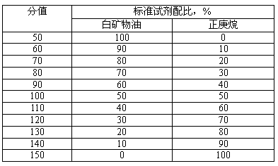 注: ① 標(biāo)準(zhǔn)試劑配比,按體積比,在20℃環(huán)境中配制。