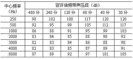 表3 聽覺安全容許標準