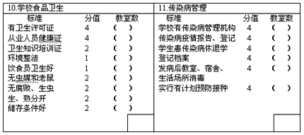 ?。藴实母戒洠?BR> 表A1 學校衛(wèi)生監(jiān)督評價記分