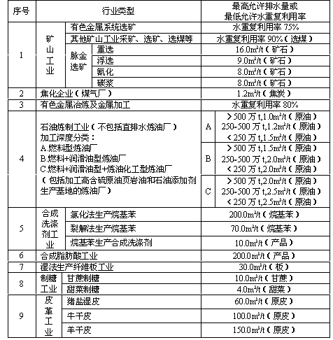 以最高允許排水量或最低允許水重復(fù)利用率來控制,均以月均值計。
