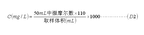 水樣中顯影劑及氧化物總量C(以對苯二酚計)按式(D2)計算: