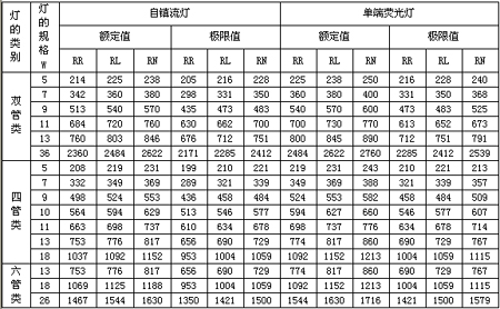 注:燈的規(guī)格在所列規(guī)格之外時采用高一級規(guī)格標準。