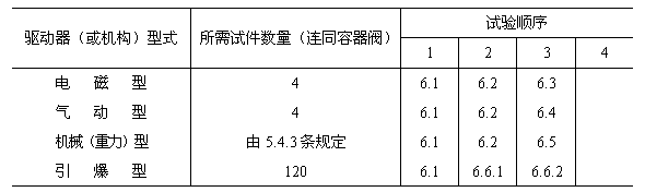 借助于容器閥和容器,將100件引爆型驅(qū)動器(或機構(gòu))按正常工作位置安裝好;在最大負(fù)載的條件下依照制造廠提供的方法進(jìn)行操作,該試驗在20士5℃的溫度下進(jìn)行。