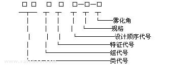 3.5.1 水霧噴頭的型號由類、組、特征代號、設(shè)計順序代號規(guī)格、 霧化角等部分組成,形成如下: