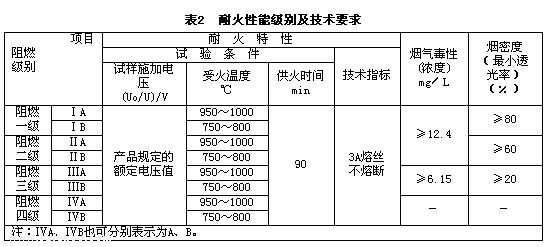 具有規(guī)定的耐火性能(包括耐火特性、材料發(fā)煙性、材料產(chǎn)煙毒性)的電纜。