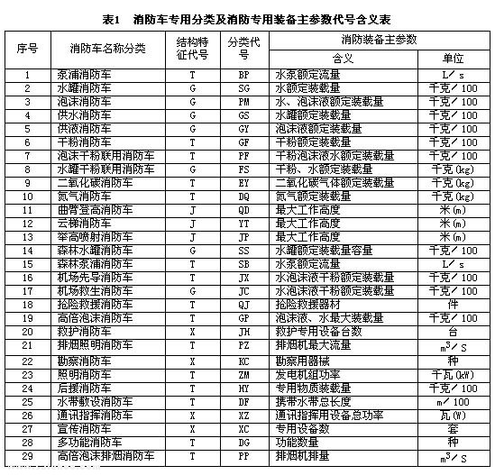 用于反映消防車結(jié)構(gòu)特征的代號(hào)。