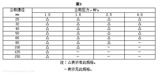 公稱通徑、公稱壓力及其單位按表1選用;