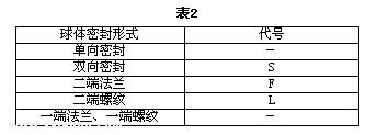 球閥密封形式代號按表2選用;