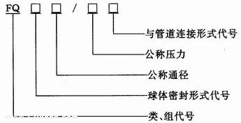 3.3.1 消防球閥的型號由類、組代號、球體密封形式代號、公稱通徑、公稱壓力、與管道連接形式代號組成,形式如下: