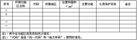 為便于區(qū)劃工作匯總,應將近岸海域環(huán)境功能區(qū)劃有關內容填入下表。