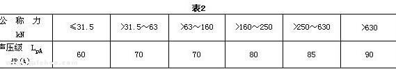 3.1 壓力機在連續(xù)空運轉(zhuǎn)時的噪聲A計權(quán)聲功率級LWA不應(yīng)大于表1的規(guī)定。