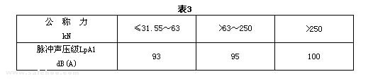 3.3 壓力機空載單次行程時在規(guī)定位置的脈沖噪聲A計權(quán)聲壓級LpA1不應(yīng)大于表3的規(guī)定。