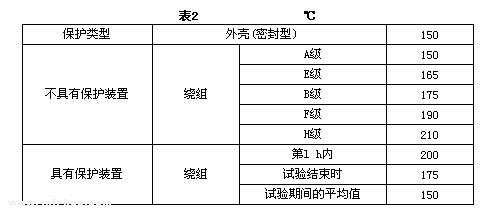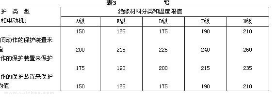 3.8.2 風(fēng)機(jī)電動(dòng)機(jī)應(yīng)進(jìn)行堵轉(zhuǎn)試驗(yàn)。將電動(dòng)機(jī)轉(zhuǎn)子的軸固定,以額定電壓通電15天(360h),或者直到保護(hù)裝置永久斷開電路為止。電源極性應(yīng)每24h換向一次。試驗(yàn)的環(huán)境溫度保持在23℃±5℃,如果當(dāng)穩(wěn)態(tài)運(yùn)轉(zhuǎn)時(shí)電動(dòng)機(jī)繞組溫度不超過(guò)90℃,則可中止試驗(yàn)。否則應(yīng)在整個(gè)試驗(yàn)期間測(cè)定外殼溫度不超過(guò)150℃,且繞組溫度不應(yīng)超過(guò)表2、表3的規(guī)定。