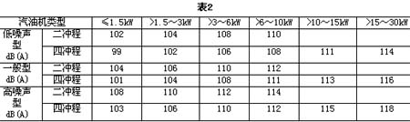風(fēng)冷汽油機(jī)噪聲聲功率級(jí)限值按表2規(guī)定。