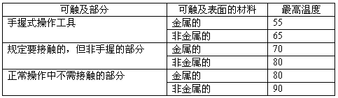 在伸臂范圍內(nèi)的設(shè)備可觸及部分在正常運(yùn)行中的最高溫度
