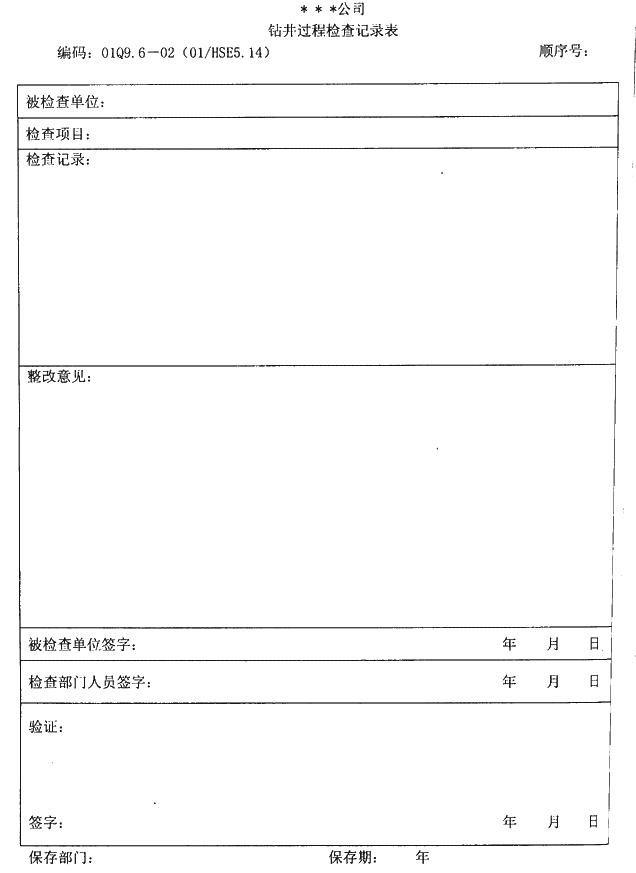 ①鉆井過程檢查記錄表,表17