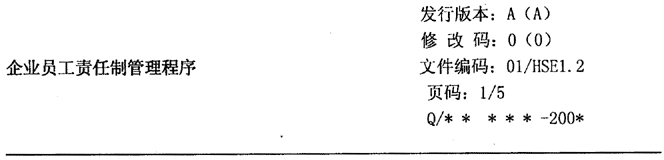 4.6.1 各崗位員工責(zé)任制應(yīng)形成文件并學(xué)習(xí)掌握,由主管部門填寫“企業(yè)員工責(zé)任制記錄”(01/HSE1.2-01),報(bào)所在單位勞資部門備案。