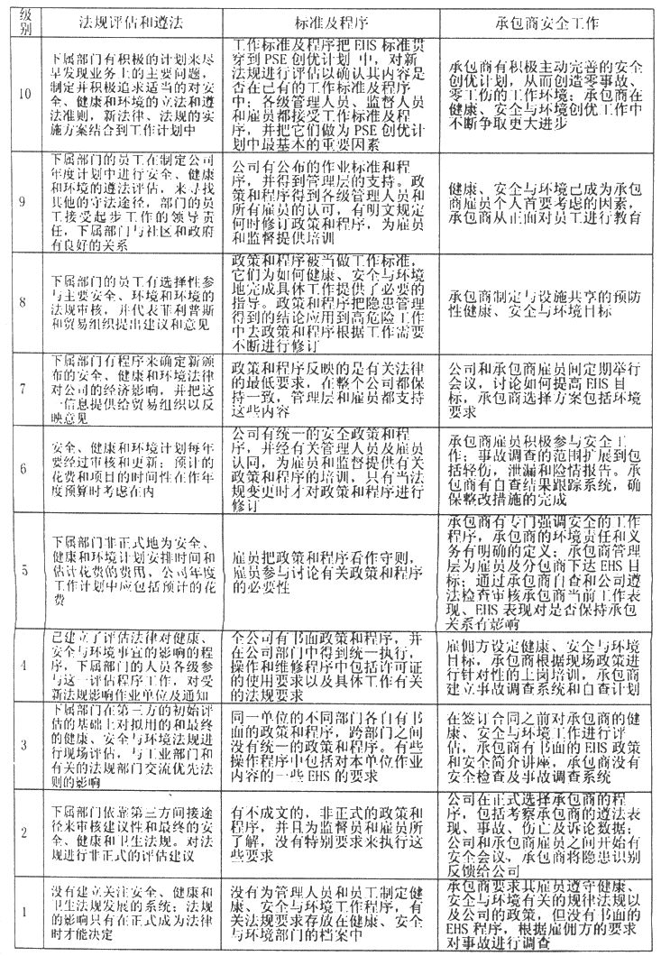 承包商必須有基本的健康、安全、環(huán)境管理體系來保證必要的安全、環(huán)境要素的執(zhí)行,從而取得出色的安全與環(huán)境成績。必須建立一套系統(tǒng),保證可對承包商提供的服務進行適當?shù)脑u估。