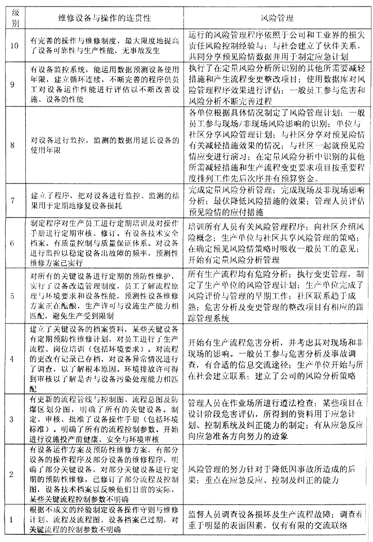 支持這一要素的系統(tǒng)及程序包括:生產(chǎn)流程及控制圖,廢物監(jiān)控系統(tǒng),預防性維修,設備操作手冊,生產(chǎn)流程總圖,防爆區(qū)劃分圖,員工資格培訓,設備變更管理制度,質量控制與保證系統(tǒng)及以風險分析為基礎的檢測體系。