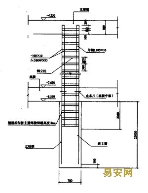 4.4.1在鋼構(gòu)柱與底板混凝土中部交接處,焊好5mm厚鋼板止水片。