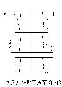 該方法適用于各類土層,每挖掘0.8~1.0m深時,即立模灌注混凝土護壁。平均厚度15cm。兩節(jié)護壁之間留10~15cm的空隙,以便混凝土的灌注施工。