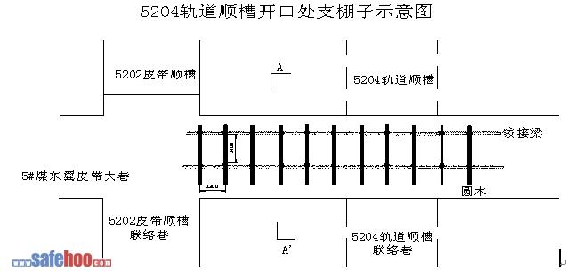 東翼皮帶大巷內(nèi)順槽口前后5米段,由于巷道頂板壓力大,頂板破碎。為確保5204軌道順槽及聯(lián)絡(luò)巷安全施工,特在原有錨網(wǎng)支護(hù)的同時(shí)加設(shè)棚子支護(hù)。