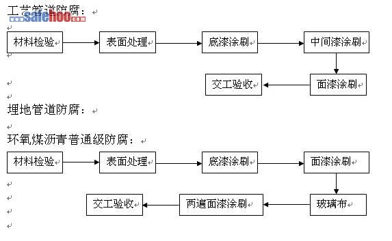 本工程屬新建工程,質(zhì)量要求嚴(yán)格,其中工藝管道除銹和給排水管道防腐直接影響防腐施工質(zhì)量,為技術(shù)關(guān)鍵工序。