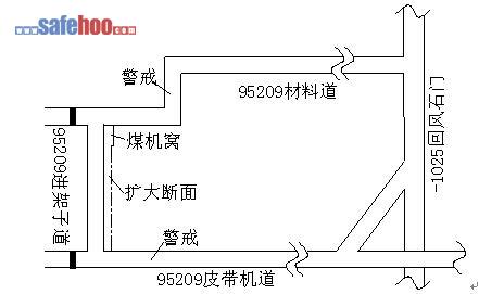 根據(jù)礦井生產(chǎn)安排由我區(qū)負(fù)責(zé)將95209進(jìn)架子道分四段炮掘擴(kuò)大至設(shè)計(jì)斷面,煤機(jī)窩位于切眼下口(95209切眼透窩處),施工至煤機(jī)窩處時(shí)一起將煤機(jī)窩刷出,為確保施工安全,編制本措施。