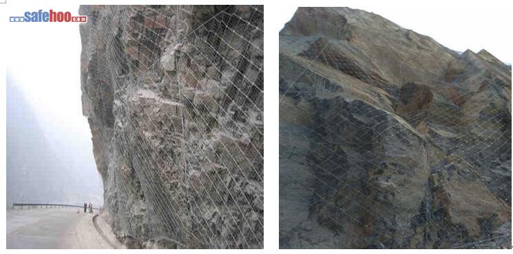 3、邊坡防護網(wǎng)張拉固定達到危石滾落目的