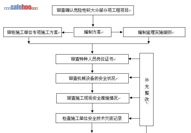 1、認(rèn)真審核施工單位的專項(xiàng)施工方案:該事項(xiàng)為“超過(guò)一定規(guī)模危險(xiǎn)性較大的分部分項(xiàng)工程”重點(diǎn)審查施工單位的審批手續(xù)是否符合要求,方案內(nèi)容是否有針對(duì)性,是否齊全;安全體系是否完整,措施是否符合施工要求。是否組織專家論證,專家組意見是否完全采納。