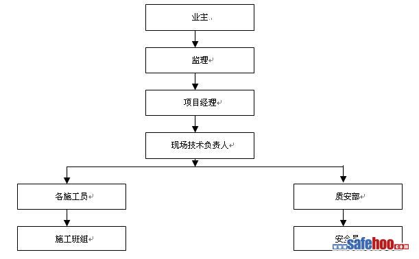 成立以項(xiàng)目經(jīng)理為核心,以專業(yè)主管工程師、專職安全監(jiān)察員為骨干的安全工作領(lǐng)導(dǎo)小組,明確項(xiàng)目經(jīng)理為第一責(zé)任人,對(duì)現(xiàn)場(chǎng)施工安全工作負(fù)全面責(zé)任,明確各級(jí)人員的安全職責(zé),包括項(xiàng)目經(jīng)理、技術(shù)人員、班組長(zhǎng),專兼職安全員和作業(yè)工人等。安全工作必須落實(shí)到人,形成人人講安全,人人管安全,班前講安全,上班查安全的良好風(fēng)氣。制定安全重點(diǎn)防范內(nèi)容,建立安全教育制度,安全檢查制度,安全交底制度和安全事故處理制度,形成一套行之有效的安全保證體系:
