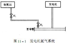 xx發(fā)電廠,在進行一臺氫冷發(fā)電機停機檢修時,機內(nèi)的氫氣已置換為空氣,并化驗機內(nèi)空氣含氫量低于安全值,由于管理混亂,忽視了對發(fā)電機氫系統(tǒng)的管理,工作人員缺少對氫冷設(shè)備、制氫、儲氫裝置運行與維護規(guī)定的學習。在發(fā)電機停機檢修時,工作人員系采用斷開電源的方式,用閥門關(guān)斷發(fā)電機的氫氣源。由于閥門本身的缺陷,使氫氣管路關(guān)閉不嚴,大量的氫氣漏入發(fā)電機內(nèi),機內(nèi)氫氧爆炸混合氣體濃度大大超過爆炸極限,檢修過程中,由明火引起氫氣爆炸,如圖11-1所示。